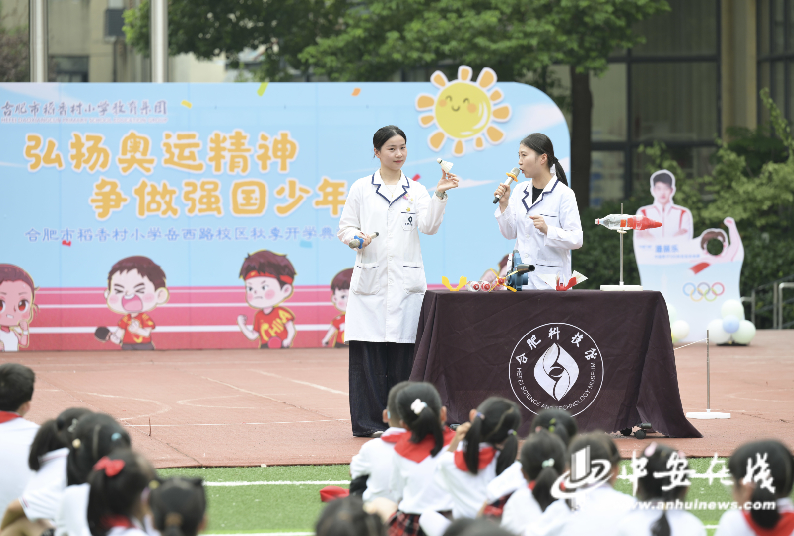 典礼上,学校还对暑假期间表现突出的“优秀雏鹰假日小队”进行了表彰,以此激励更多孩子积极参与社会实践,发扬奥运“更加团结”的精神,全面提升个人综合素质与能力。此外,合肥市科技馆的科普表演“千分之三的挑战”也为师生们带来了一场别开生面的科技盛宴。科技志愿者通过生动的实验演示,揭示了火箭逃逸塔的“质心前移”和栅格翼“压心后移”的科学原理,让孩子们在惊叹中感受航天人勇于探索、敢于挑战的精神风貌。