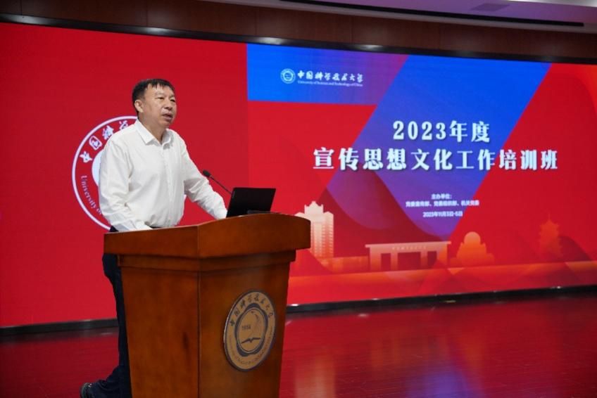 11月3日至5日,中国科大2023年度宣传思想文化工作培训班在安徽金寨干部学院顺利举办。3日上午,校党委书记舒歌群作开班动员讲话。党委副书记、党委宣传部部长邓建松主持开班式。各院级党组织书记、副书记、宣传委员、党务秘书,机关党委负责人,机关各支部宣传委员参加开班式。