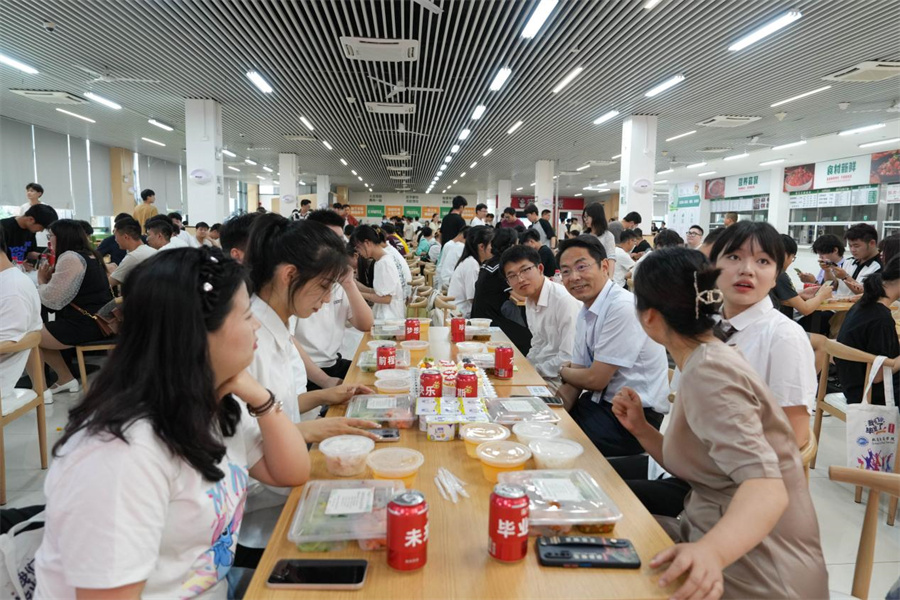 合肥职业技术学院党委书记王杰才与学生午餐会上共话青春。合职供图
