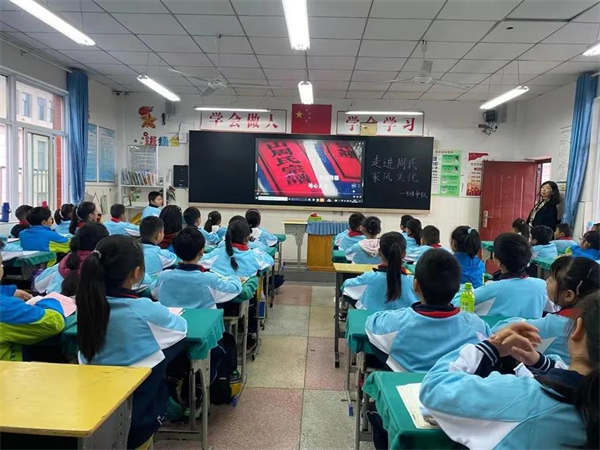 走近周氏文化。各班通过学校下发的学习材料、发动学生自主在网上查找视频、图片等资料,在探访前集体学习,初步了解周氏家风文化;在10月19日的少先队活动课上,该校以班级为单位集中观看了《六世书香 百年家风》专题片,队员们被周氏家族文化魅力所感染,被周家行善乡里、回报社会的事迹所感动。