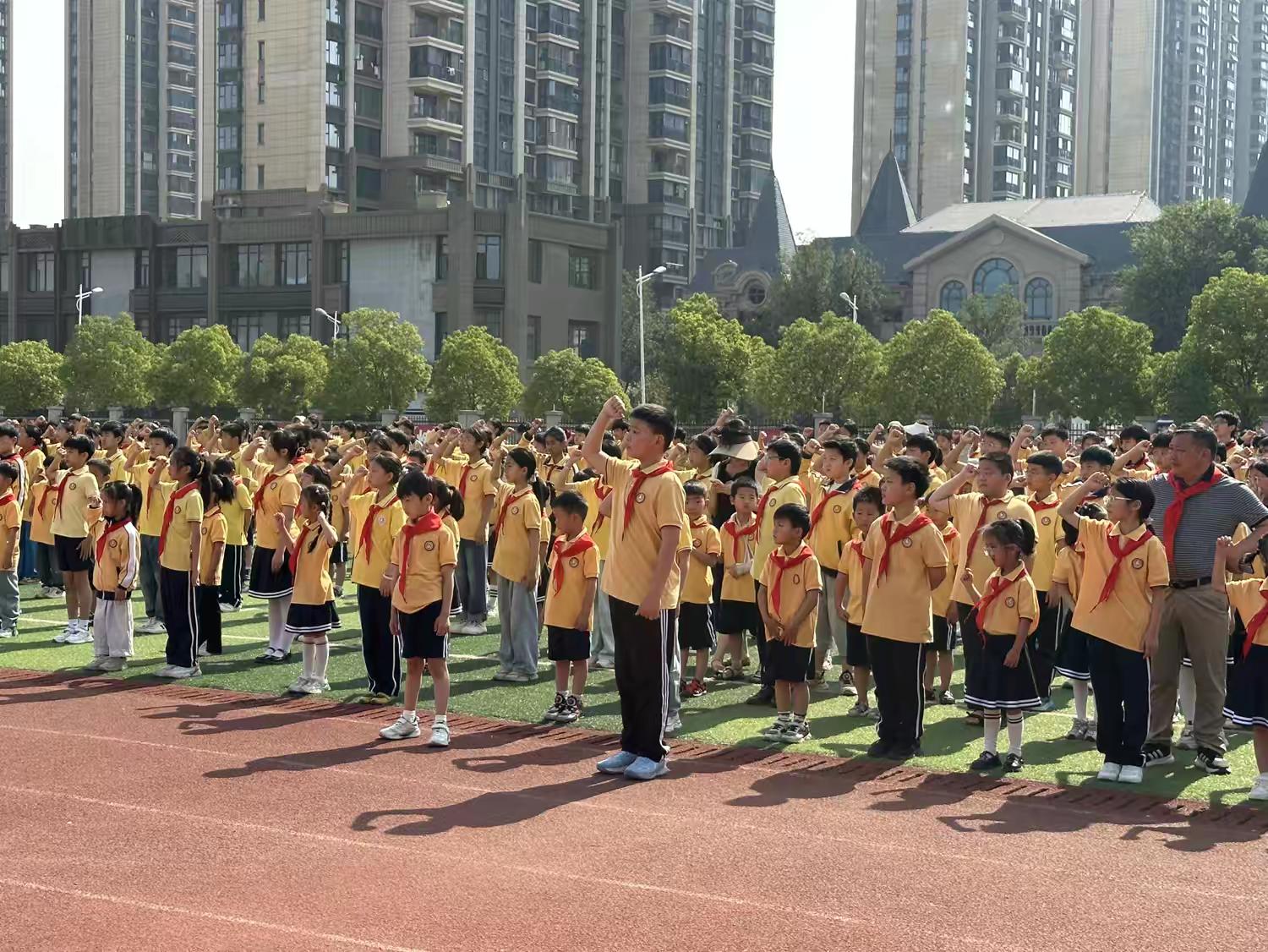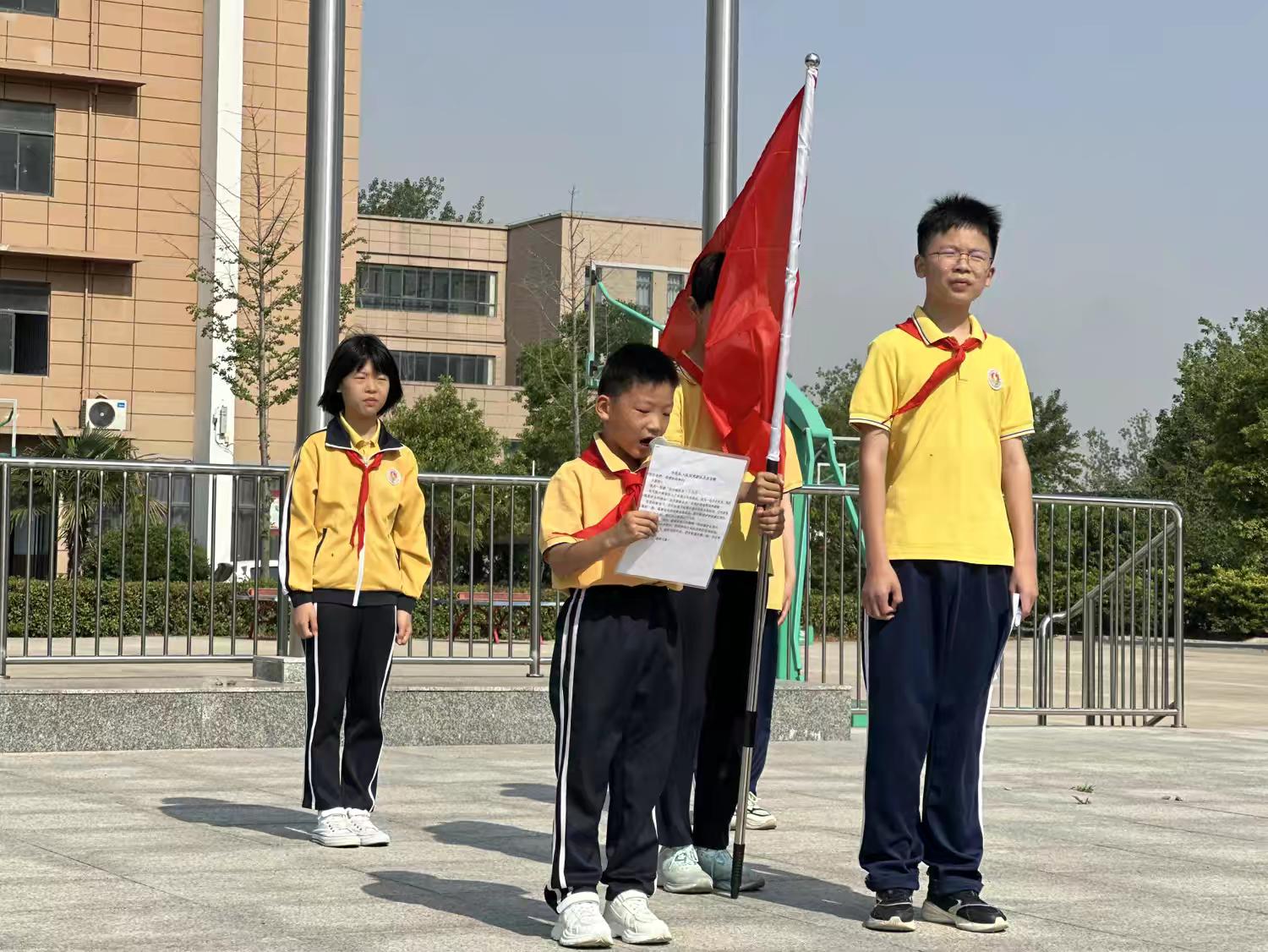 激昂的《中国少年先锋队队歌》旋律响起,全体少先队员挺直腰板,精神抖擞。他们用稚嫩却坚定的声音,齐声高唱“我们是共产主义接班人”,歌声嘹亮,充满朝气与力量。