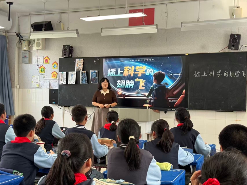 为了让不同年龄段的学生在同一主题下“有话可说、有理可辩”,合肥师范附小充分发挥基础教育基点作用。活动前期,附小教师团队围绕“科技强国”主题,开展了多学科协同教学:语文课上,学生们在《插上科学的翅膀飞》中放飞想象;英语课上,AI融入生活的讨论激发了学生的国际视野;道德与法治课上,《创新改变生活》引导学生关注科技背后的社会价值。这一系列扎实的学科教学,为附小学子在后续的跨学段交流中“敢于畅想、善于表达”打下了坚实基础,实现了知识传授与价值引领的同频共振。