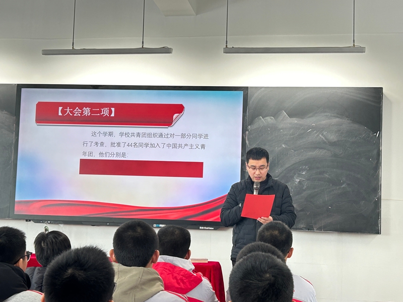 仪式在激昂雄壮的国歌声中正式开始,全场肃立,歌声嘹亮,澎湃的爱国情怀激荡在每个人心中。校团委书记严世宇郑重宣读新团员名单。44个闪亮的名字,代表着44份坚定的选择与新生力量的汇入,现场响起热烈掌声,充满欣喜与期待。