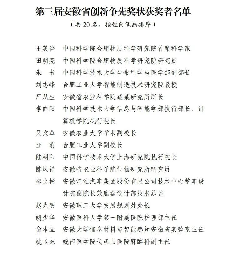 第三届安徽省创新争先奖