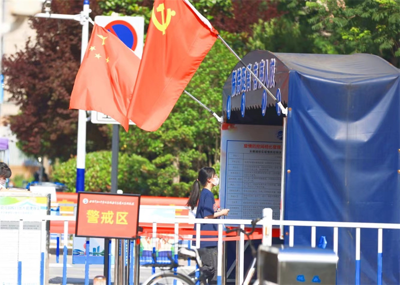 “同学加油,考出好成绩!”合肥五十中天鹅湖校区外,合肥八中学生志愿者为本届考生呐喊助威。