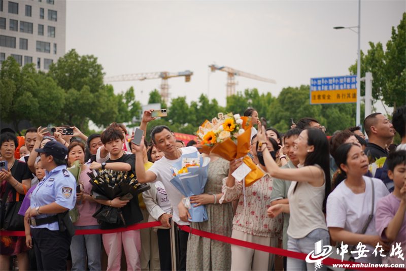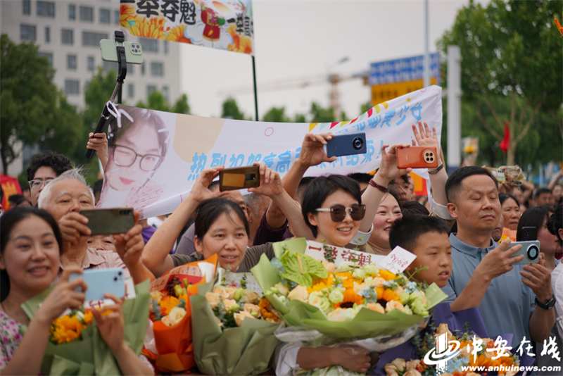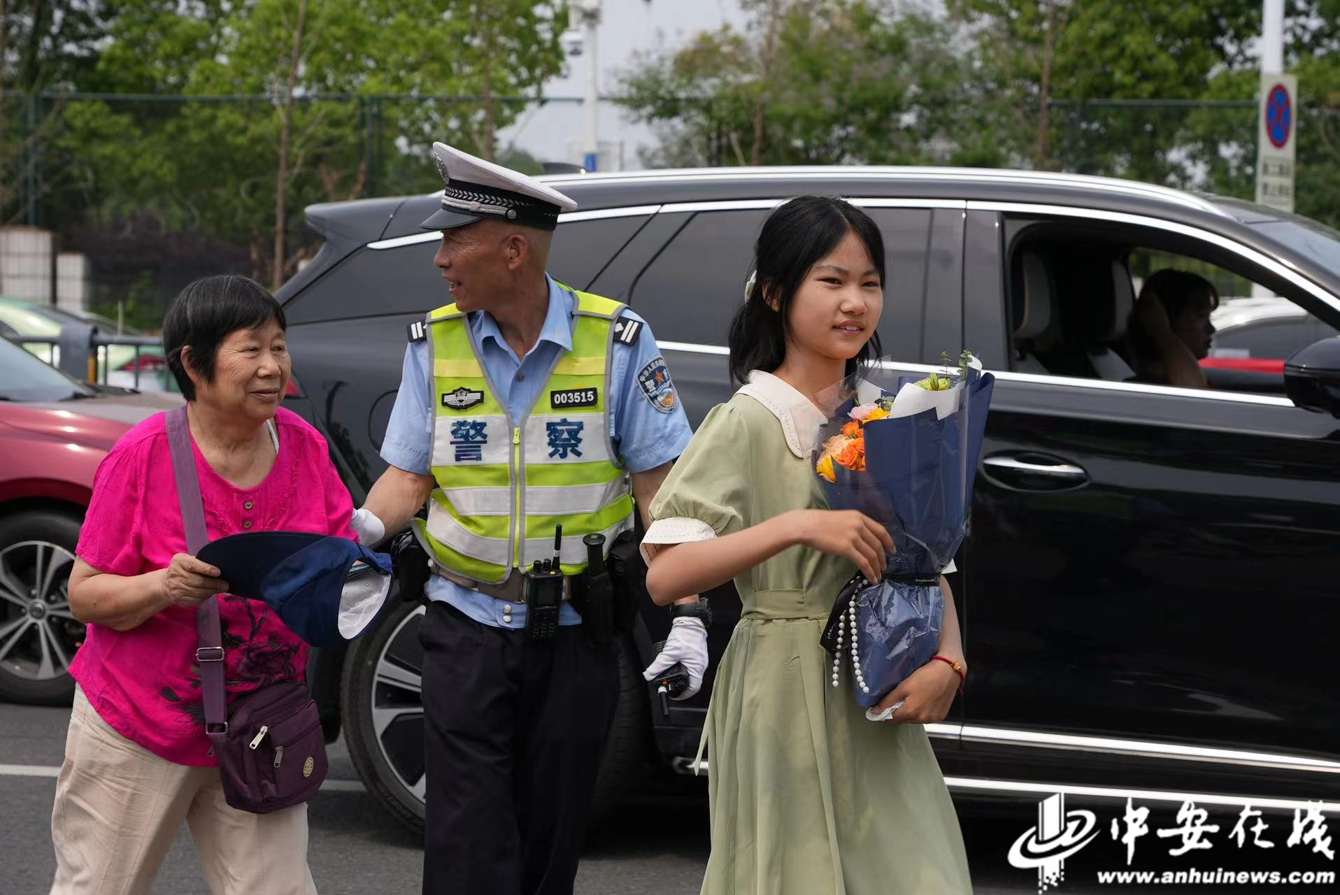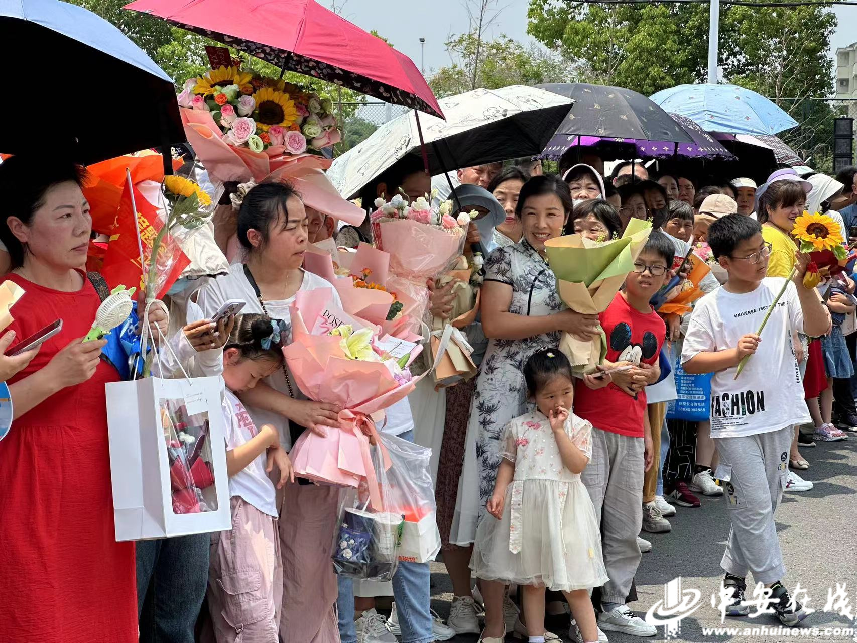 6月9日,合肥七中考点,亲友们以不同方式迎接考生。(记者 徐慧冬)