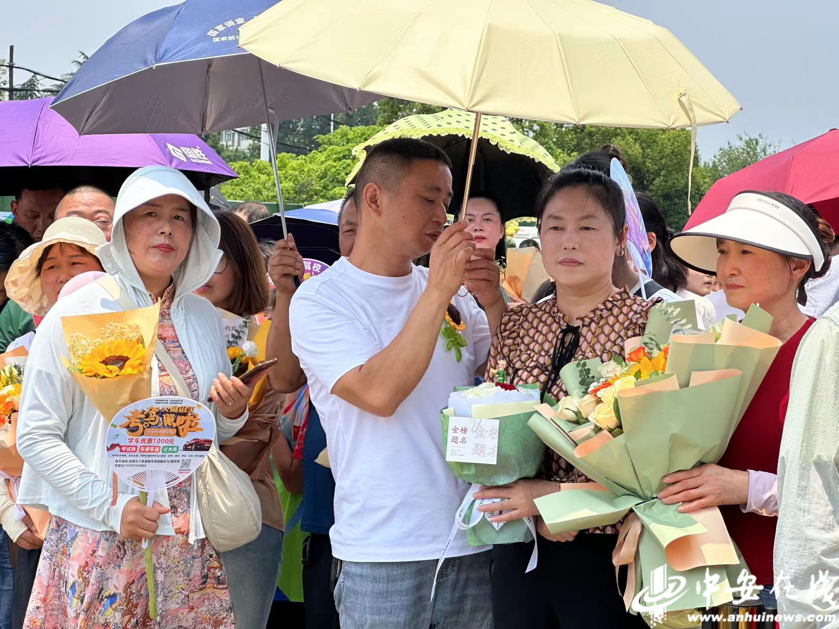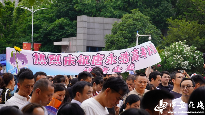 6月9日下午,合肥四十六中门口,等候的家长为孩子点赞加油。
