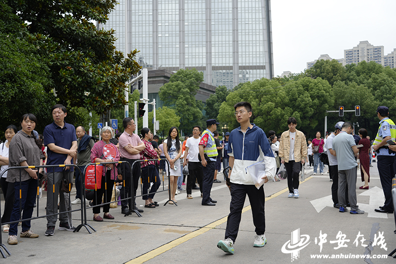 6月7日下午,合肥市第八中学考点外,数学考试马上开始,同学们纷纷进入考场。