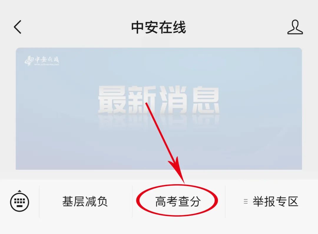 方式一:中安在线微信公众号,关注中安在线微信公众号,点击菜单中的【高考查分】。