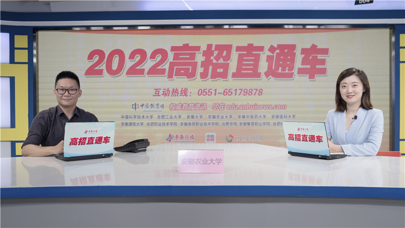 欢迎广大考生及考生家长们拨打我们的热线电话0551—65179878与我们实时交流,同时可以登陆中安在线、中安教育网、中安新闻客户端等平台留言关注我们的视频直播。本场作客演播室的嘉宾是安徽农业大学招生就业处招生办公室主任曹玮,曹老师您好。