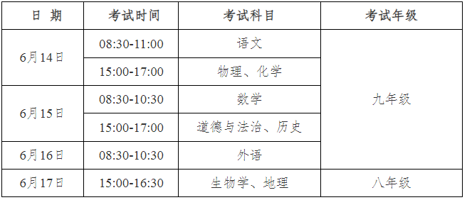 语文、数学、外语、物理、化学实行纸笔闭卷考试,语文考试允许使用正版学生字典;道德与法治、历史实行纸笔开卷考试,允许携带教科书等相关资料。生物学、地理实行纸笔闭卷考试。各学科考试均不允许使用计算器。