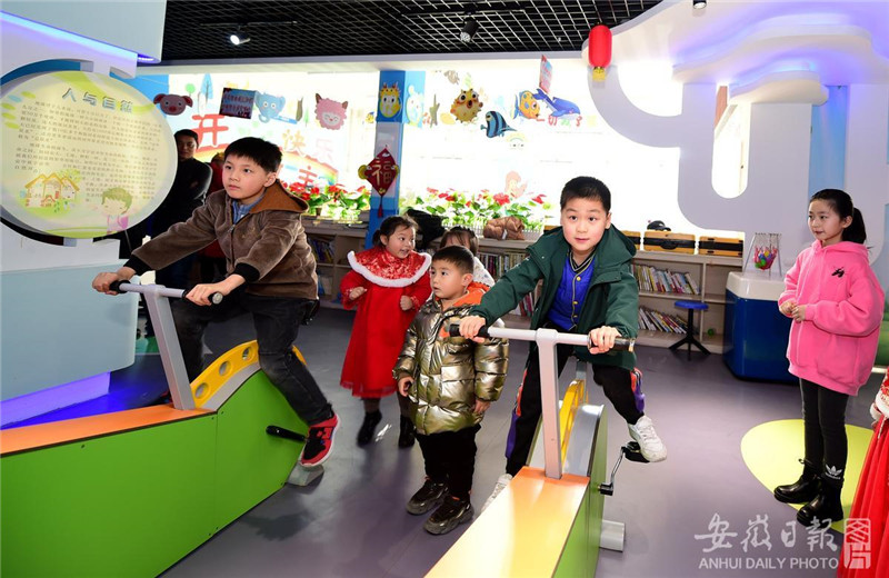 2021年2月13日,小朋友在合肥市庐阳区大杨镇夹塘社区科普馆参观体验。春节期间,合肥市庐阳区大杨镇夹塘社区科普馆正常对外开放,社区小朋友可以到科普馆参观体验,感受科学的魅力。通讯员 葛传红 吴斌 摄