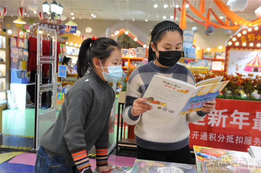 2月21日,在合肥市瑶海图书城,学生和家长在选购图书。开学将至,合肥市各大书店迎来图书销售高峰,许多学生和家长来到书店购买教辅书籍和学习用品,迎接新学期的到来。通讯员 熊璟怡 摄
