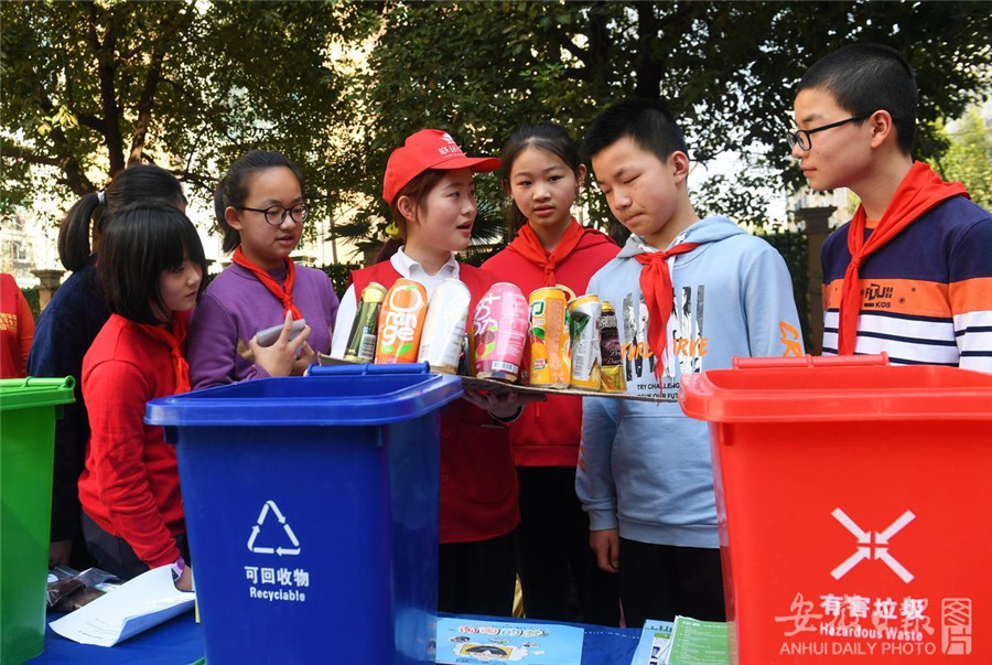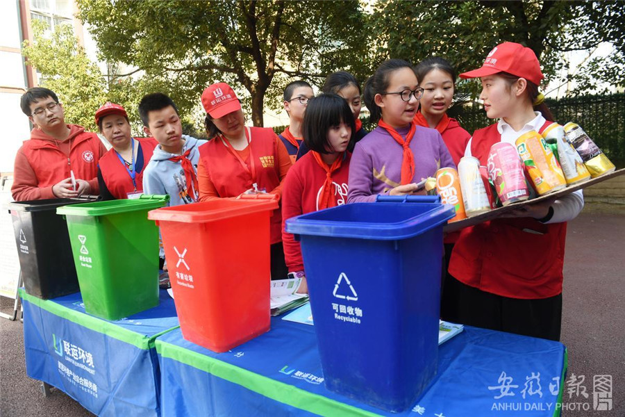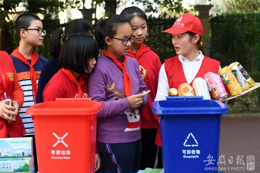 2月22日是合肥市中小学开学首日,合肥市蜀山区五里墩街道志愿者在颐和佳苑小学,为孩子们带来了生动的“垃圾分类”小课堂,通过分类知识讲解、垃圾资源化利用物品展示和互动游戏等形式引导同学正确进行垃圾分类。记者 杨竹 摄
