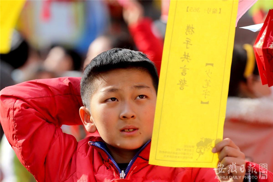 2月23日,淮北市第三实验小学举行师生和乐猜灯谜活动,弘扬传统文化,庆祝元宵佳节。通讯员 于金龙 摄