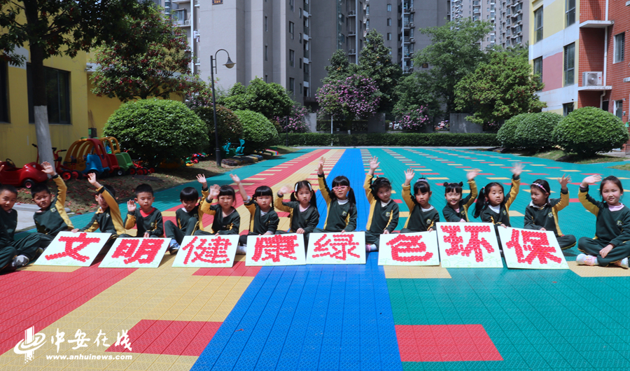 中安在线、中安新闻客户端讯 今年4月份是第33个爱国卫生月,4月28日,合肥市包河区滨湖世纪社区联合辖区幼儿园开展“文明健康 绿色环保”主题活动。活动现场老师向孩子们讲述了生活中的文明健康小知识,然后师生们一起开展趣味拼字游戏,用收集的废弃瓶盖拼出“文明健康 绿色环保”。通过寓教于乐,增进孩子们文明健康、绿色环保的意识,促进形成“文明健康 绿色环保”的生活方式。