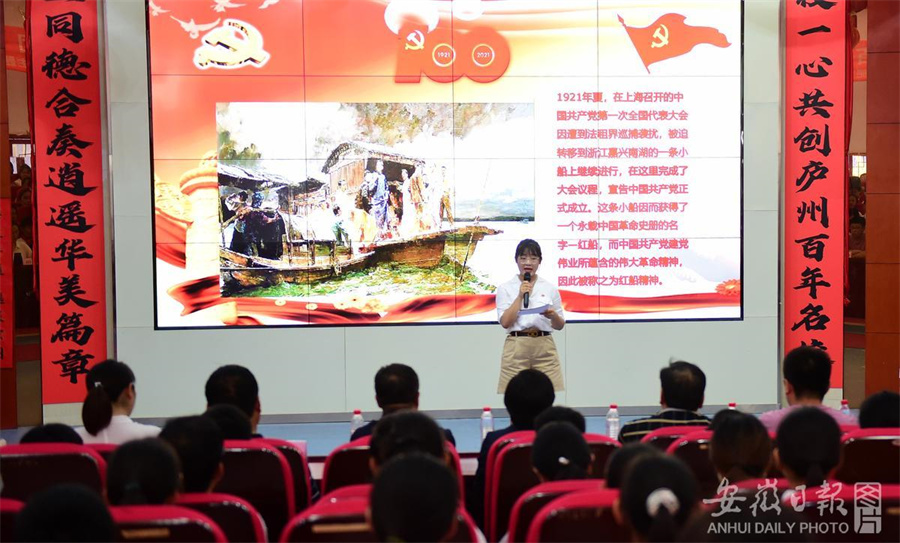 近日,在合肥市逍遥津小学金都校区,学生展示社区党委赠送的红色邮票。为庆祝中国共产党建党100周年,引导学生学党史、感党恩、跟党走,当日,合肥市庐阳区杏花村街道金都社区联合逍遥津小学金都校区开展“红色邮票进校园”活动,社区党委为学生代表们每人赠送了两版见证我党历史发展的红色邮票,社区党员志愿者、新乡贤为学生分享红色邮票中的党史故事,让学生感受幸福生活的来之不易,珍惜美好生活,努力学习报效祖国。