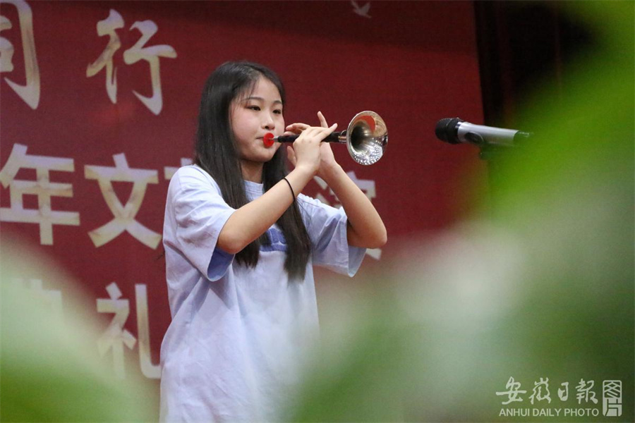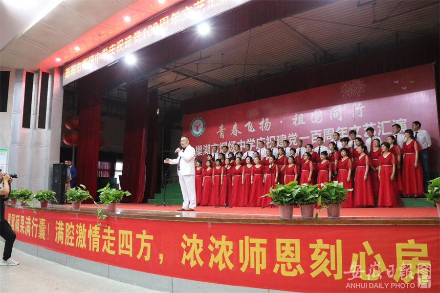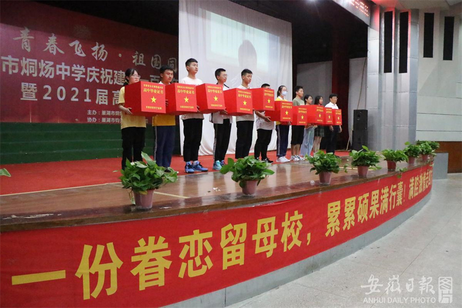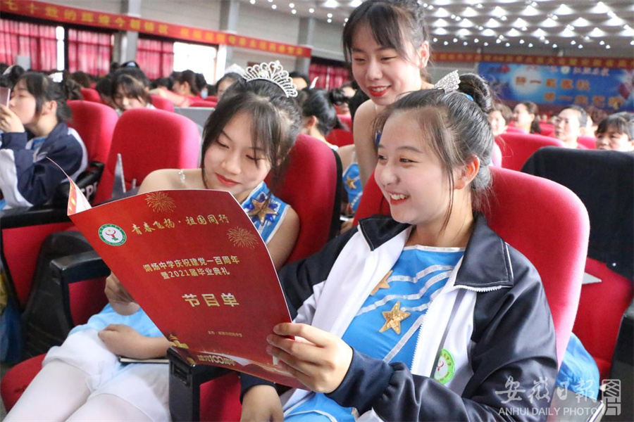 6月18日,安徽省示范高中烔炀中学在学校礼堂进行庆祝建党一百周年文艺汇演暨2021届毕业典礼。通讯员 曹永龙摄