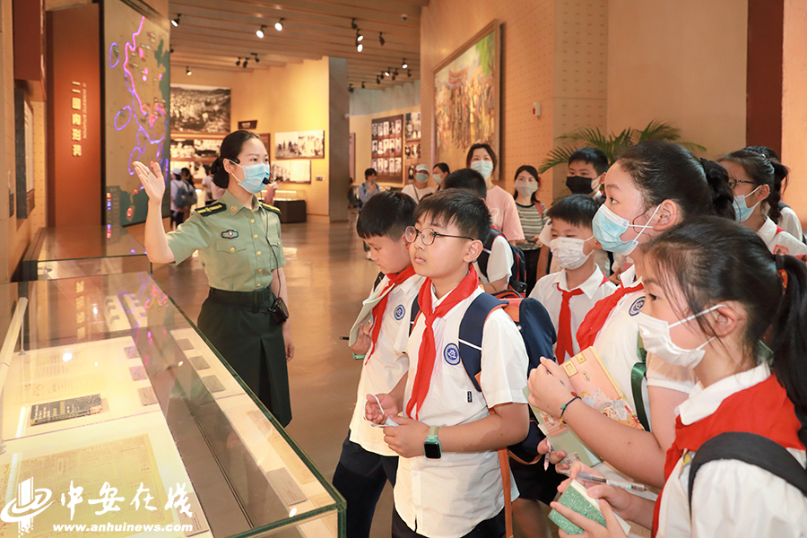中安在线、中安新闻客户端讯 红色基因绵延百年,革命薪火代代相传。7月20日上午,为庆祝中国共产党成立100周年,合肥市六安路小学五(6)中队的少先队员们跟随辅导员段谢芳老师一起走进渡江战役纪念馆,寻访红色足迹,宣讲红色故事,传承红色基因。