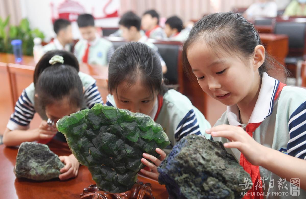 8月4日,合肥市西园新村小学南校的学生们,在浅水湾社区科普志愿者引导下,做科学课堂实验、学地质基本知识,提升科学素养。暑期内,合肥市在全市范围内推广社区与丰富多彩的志愿者课堂联动,让孩子们在家门口就可以免费参与科普、文体、艺术等兴趣课堂。记者 杨竹 摄