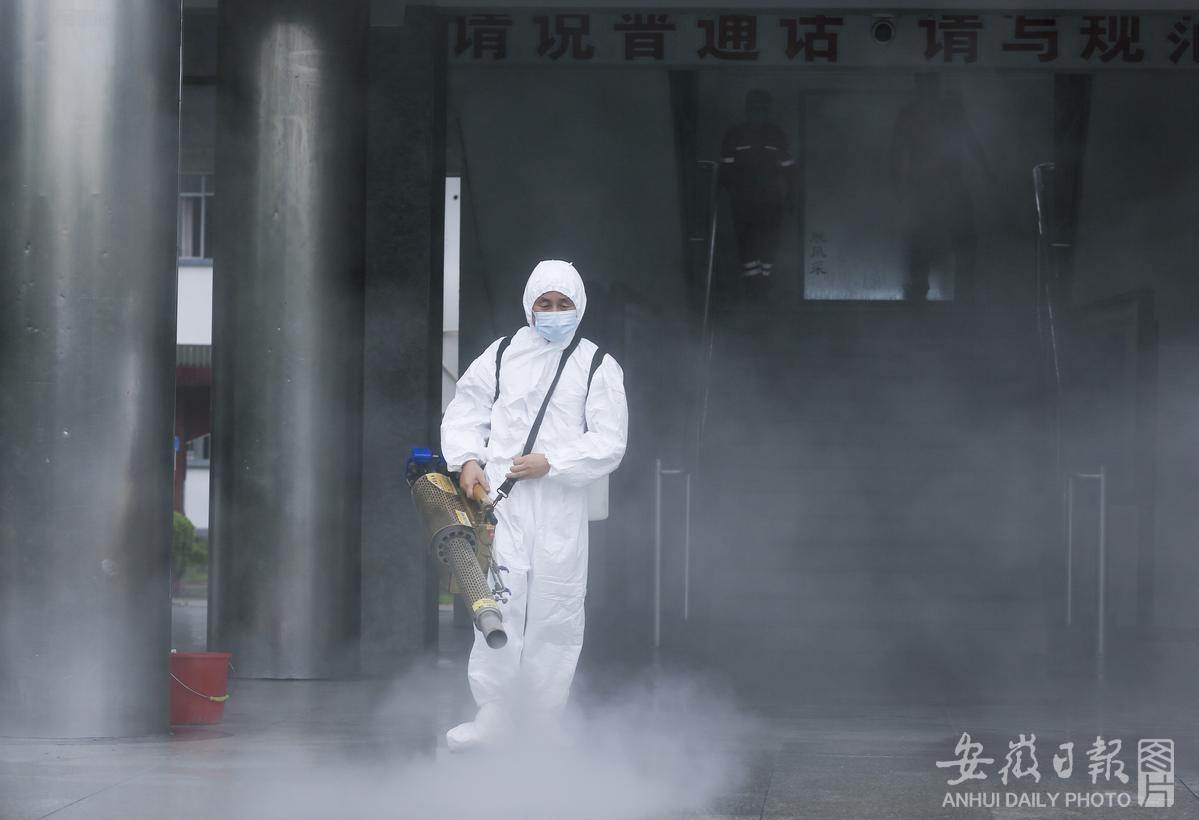 连日来,黄山市歙县各学校陆续组织人员开展为期15天的校园封闭式全面消杀作业。对教学楼、办公楼、食堂、宿舍、卫生间、廊道楼梯等区域进行全方位、无缝隙、无死角的消毒,全力营造安全卫生的校园环境,为新学期开学做好准备。通讯员 郑宏 摄