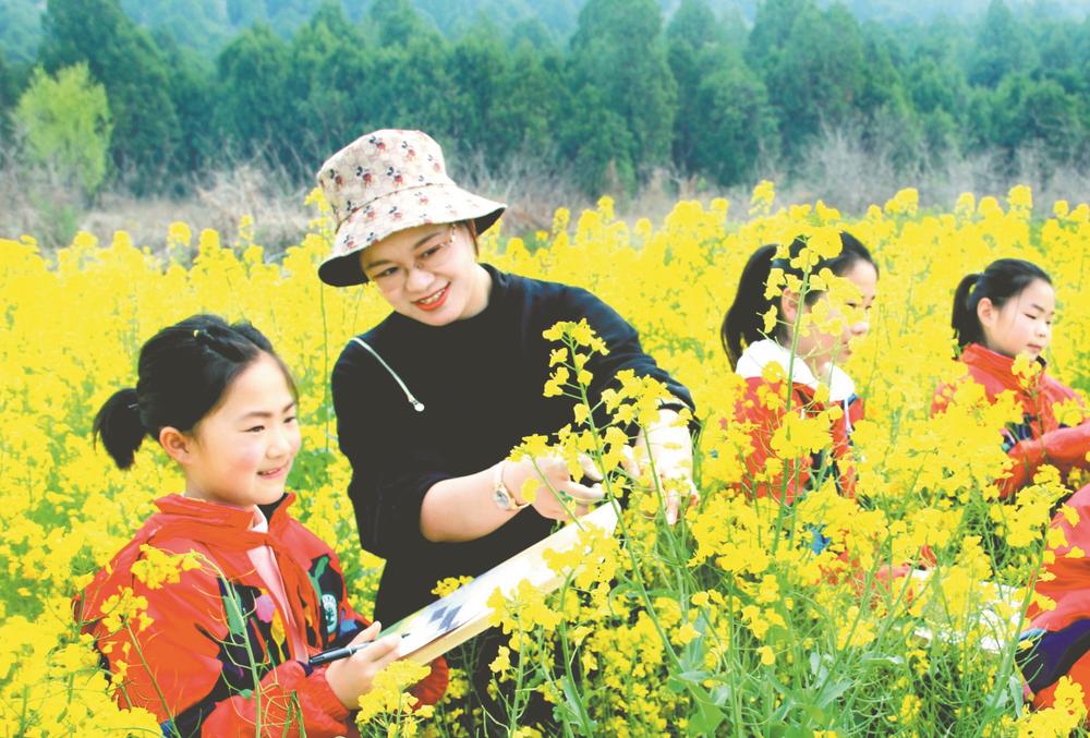 3月30日,淮北市杜集区石台镇梧北小学学生,在老师带领下走进梧桐村梧桐谷的油菜花田采风写生。当日,该校开展“寻找春天,感受家乡美好春天”主题实践活动,组织孩子们去野外踏春、写生、放风筝,以此丰富乡村少年的“第二课堂”。