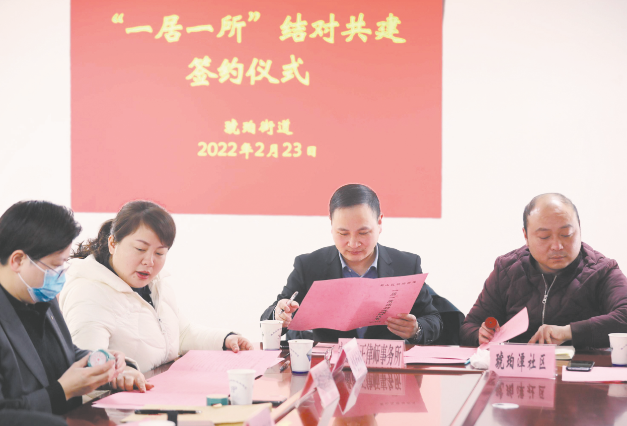 2月23日,合肥市蜀山区琥珀街道下辖6个社区同时与律所签订“一居一所”结对共建协议,专业律师进驻社区,居民迎来家门口的“法律顾问”。 通讯员 陈三虎 摄
