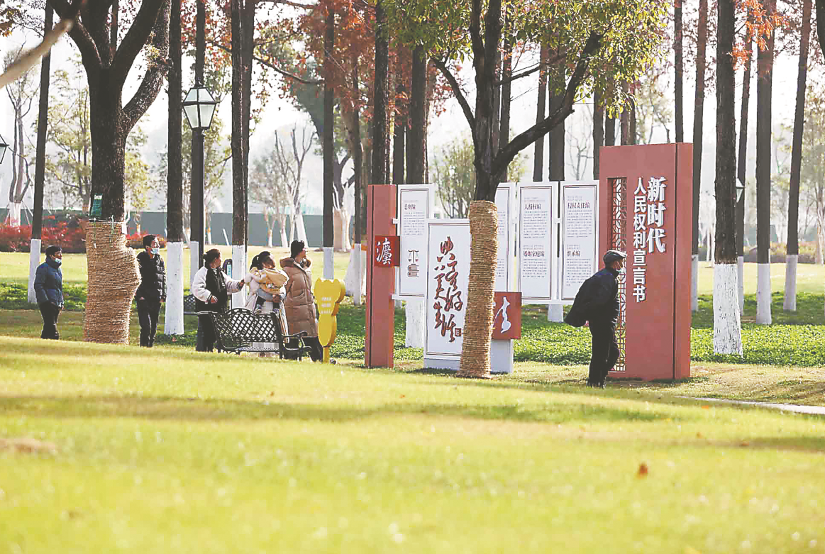 2021年底,合肥市司法局、市普法办联合瑶海区在花冲公园建设了以“典亮美好生活”为主题的民法典主题园,让市民在公园游玩休闲的同时,学习了解民法典知识。通讯员 解琛 摄
