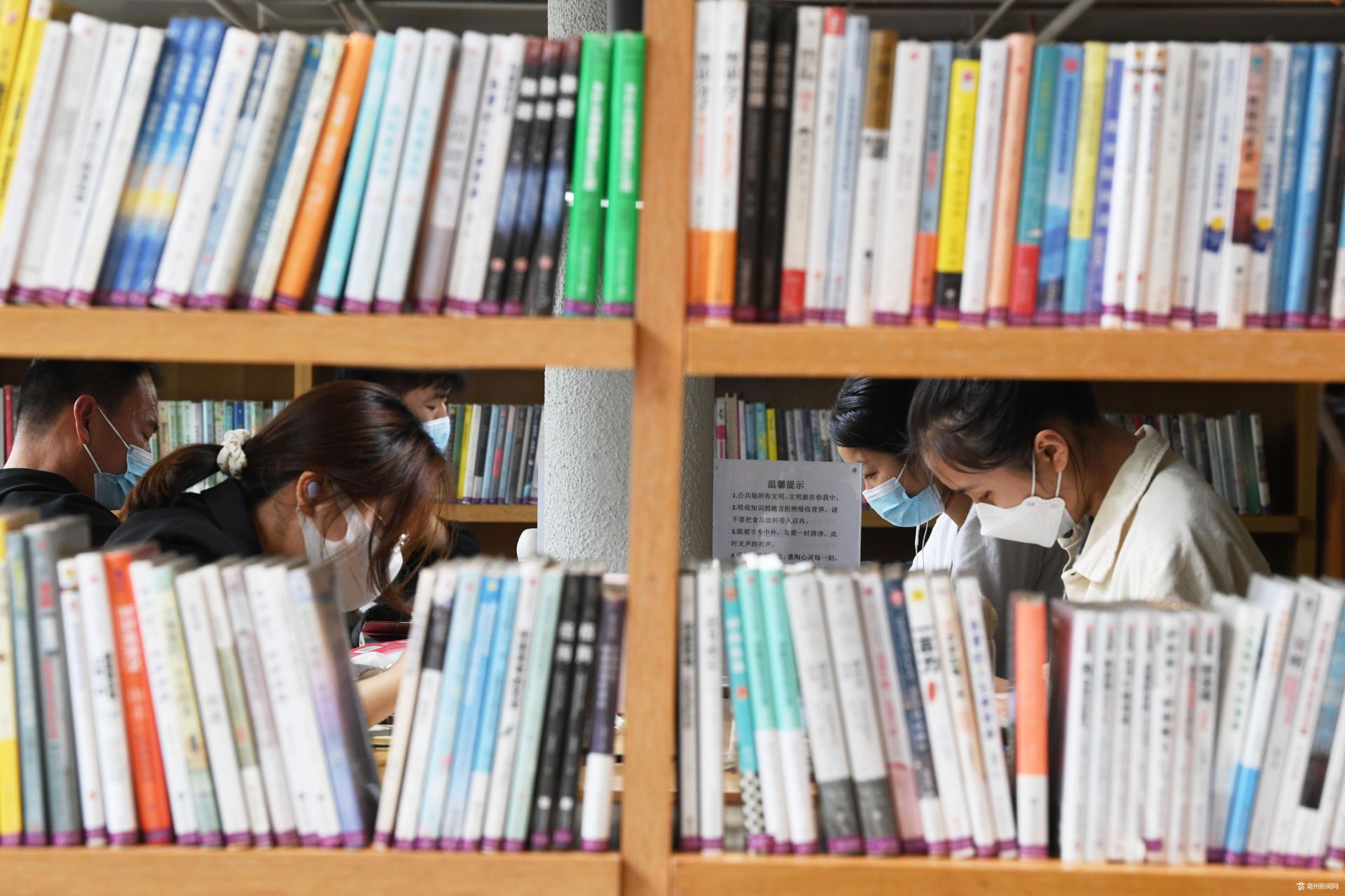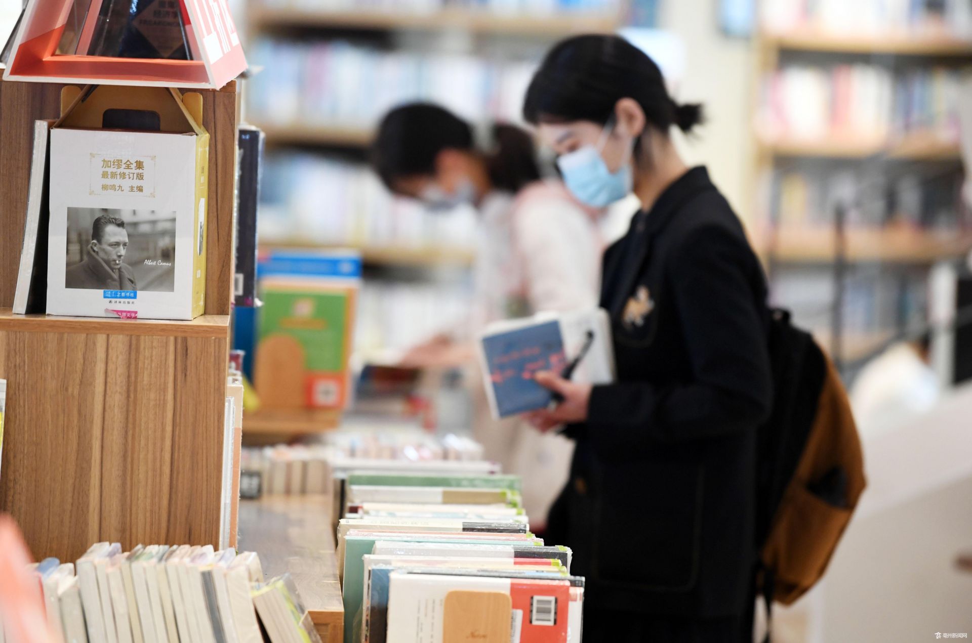 4月23日,在亳州市建安文化广场,市民正在之意书社阅读图书。当日,是“世界读书日”,不少市民走进图书馆、书店、农家书屋等场所,在安静宽敞的空间品味书香,享受读书的快乐。记者:张延林 摄