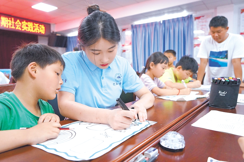 7月16日,阜阳师范大学文学院爱心支教团队走进颍上县鲁口镇李窝村开展送教活动,助留守儿童度过快乐假期。通讯员 沈云鹏 摄