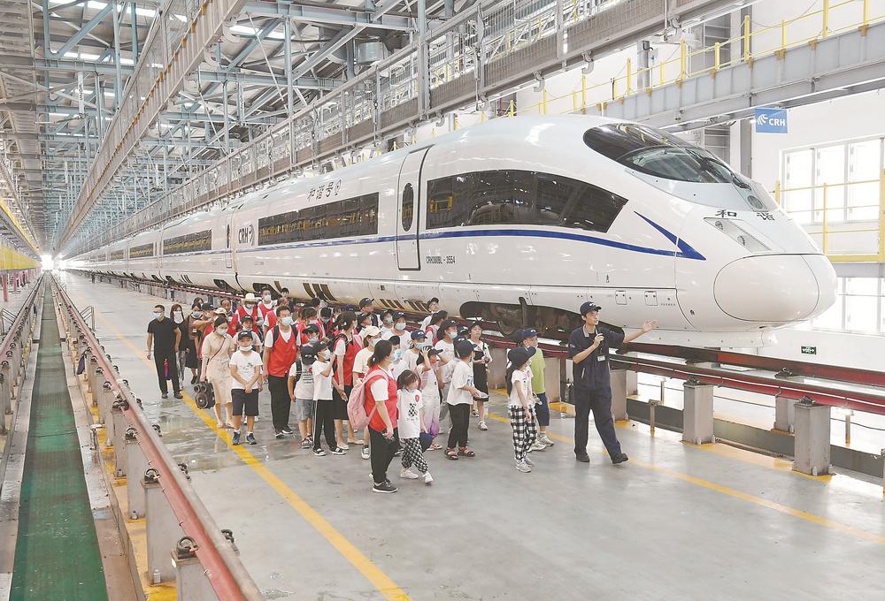 日前,留守儿童和临工家长们在合肥南站动车运用所观看动车。近年来,合肥市包河区凌大塘临工集散中心所在街道、社区妇联等连续举办“孩子,带你来合肥‘新家’看看”的儿童暑期活动,带领临工孩子们参观学习,让他们过上一个快乐暑假。