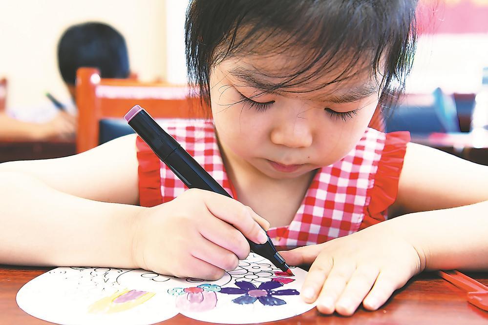 日前,合肥市新站区三十头社区暑期托管班的孩子们在绘画。