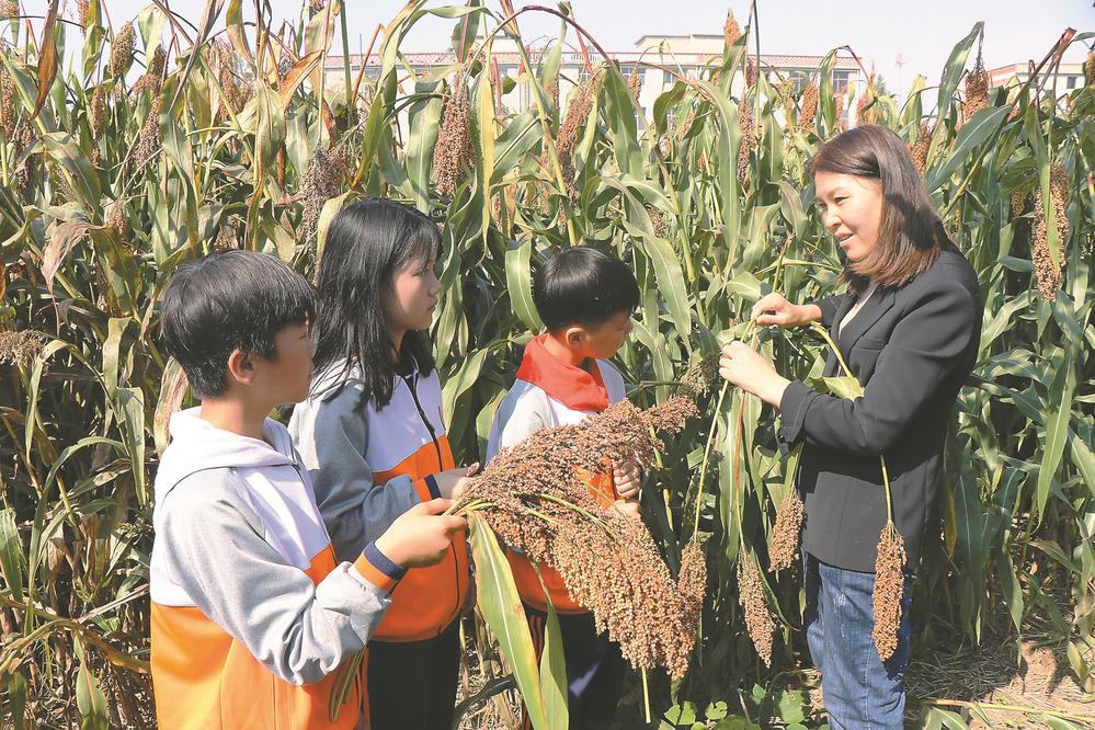 近日,亳州市谯城区大杨镇聂关村小学组织小学生走进红高粱地块,开展“珍惜粮食·拒绝浪费”主题教育活动。 通讯员 武清海 摄