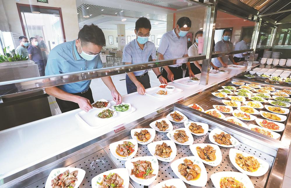 近年来,桐城市深入推进文明用餐工作,提供“小碗菜”“半份菜”等,既丰富了就餐者的用餐体验,也有效杜绝了浪费现象。图为在桐城市市直机关事务管理中心食堂,职工在选购“小碗菜”。通讯员 江胜 摄