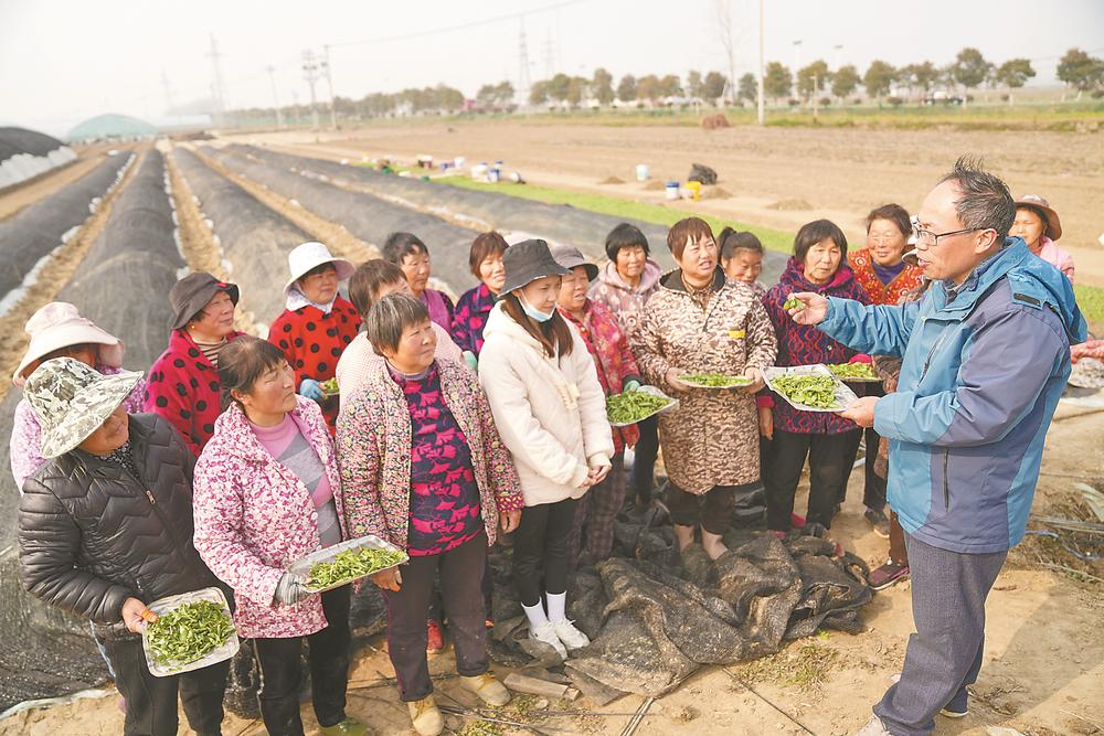3月2日,在明光市管店镇凤山村丰山组,明光市农业技术推广中心主任周福红向村民传授甜叶菊种植技术。参加工作30年来,周福红致力于测土配方研究,先后被评为全国科普惠农兴村带头人、全国测土配方施肥先进个人、全国粮食生产先进个人……去年3月,周福红被授予“全国岗位学雷锋标兵”称号。 本报记者 李 博 摄