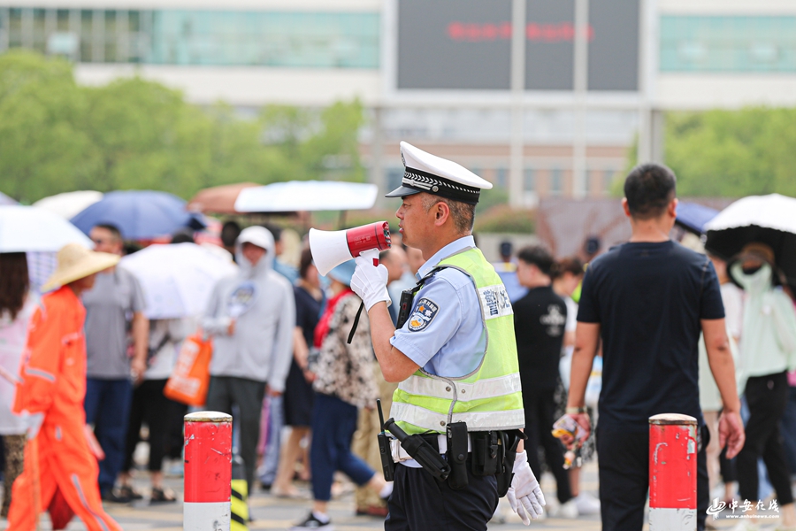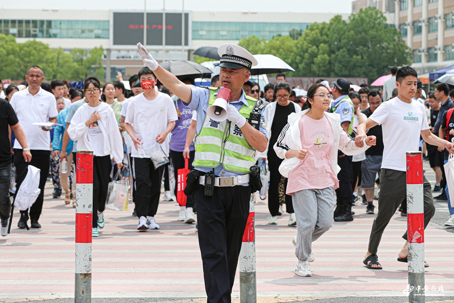 考生们走出考场,执勤交警高温下坚守一线疏导交通