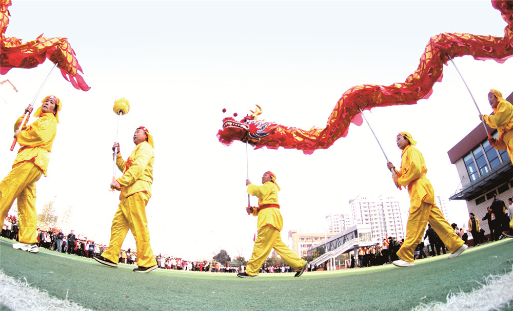2月27日,在农历二月二即将到来之际,谯城区文化馆组织非遗传人走进亳州市第四小学,为该校师生表演舞龙、口技、剪纸等非遗节目,让大家零距离感受传统文化的魅力。(洪雷 赵侠)
