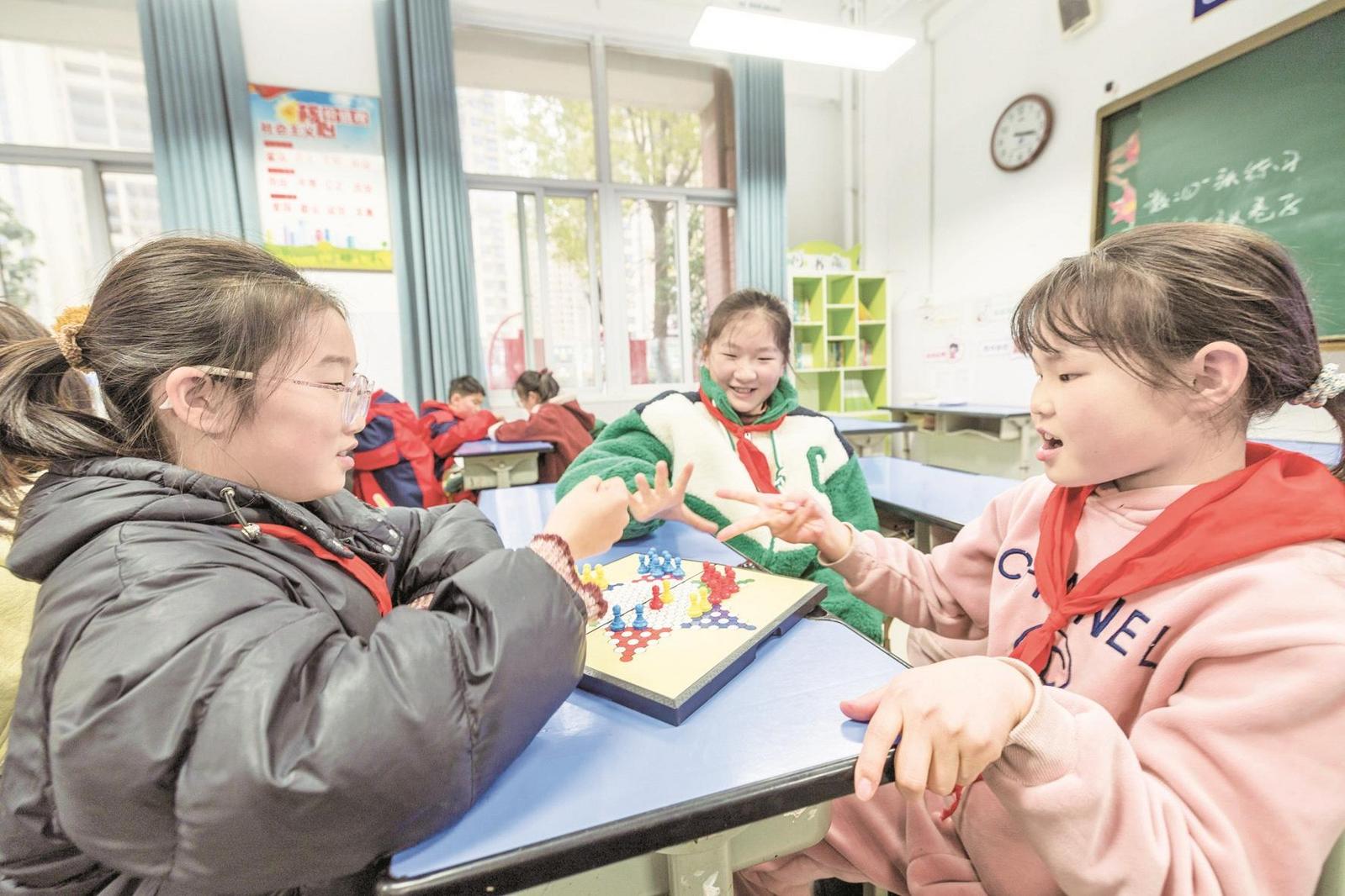 3月17日,在市拂晓小学校园内,学生们正在进行体育锻炼(上图)。今年以来,我市大力实施学校体育高质量发展和学生体质强健行动,全面落实课间15分钟,深入推进义务教育阶段学校每天开设一节体育课,保障学生课间正常活动及体育活动时间,让孩子们在游戏中释放天性,促进学生德智体美劳全面发展,真正实现让快乐“加码”、为学业“减负”。 记者 马峰 苏洋 摄