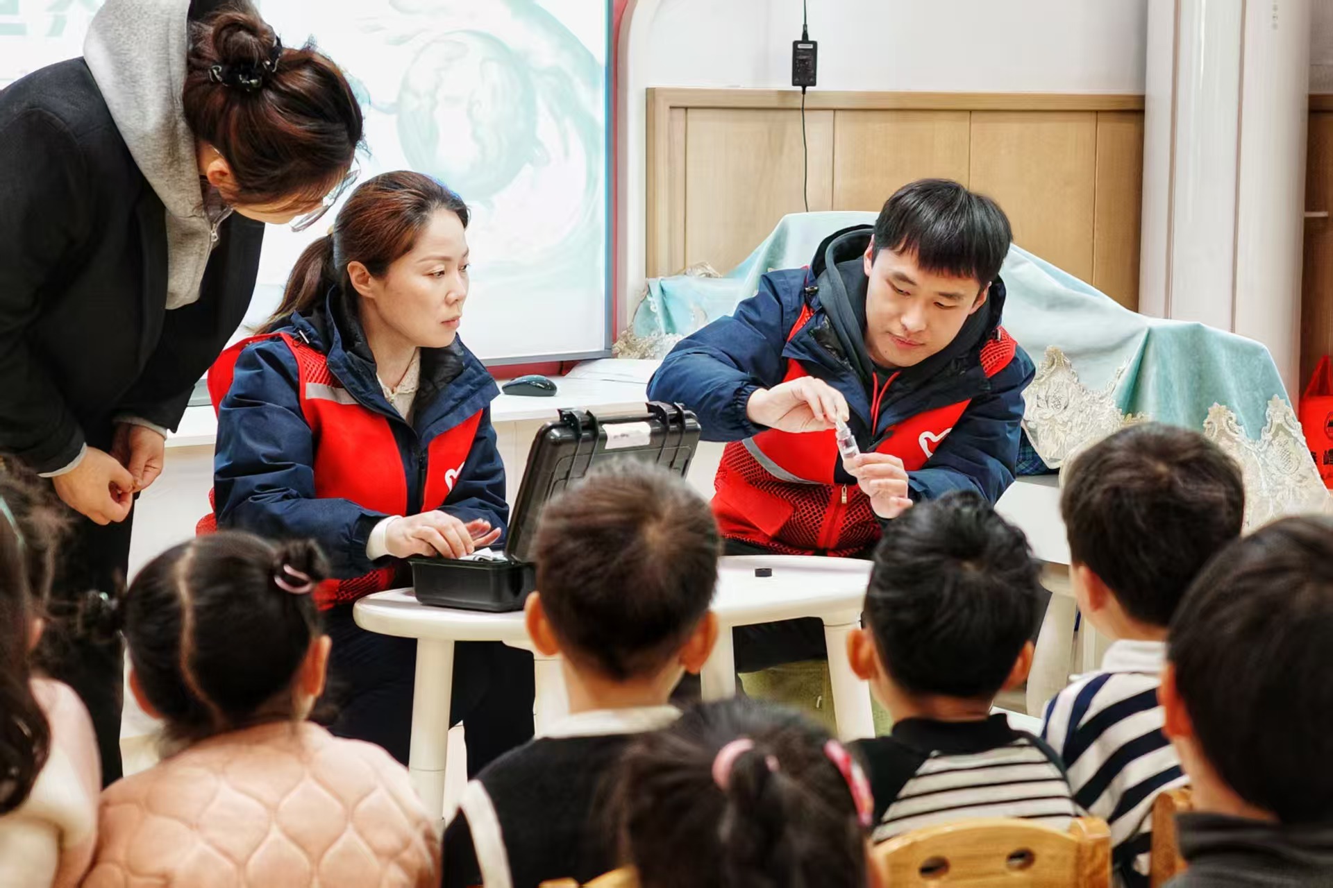 科学实验环节将活动的气氛推向高潮。志愿者们带来了简易的制水实验装置,现场为孩子们演示了水的净化过程。孩子们围坐在一起,目不转睛地观察着实验的每一个步骤,从浑浊的水逐渐变得清澈,他们惊叹不已,好奇心大发,纷纷举手提问,志愿者们一一答疑解惑。通过直观的实验,孩子们不仅了解了制水生产的复杂过程,更深刻体会到每一滴干净水的来之不易,从而增强了节约用水的意识。