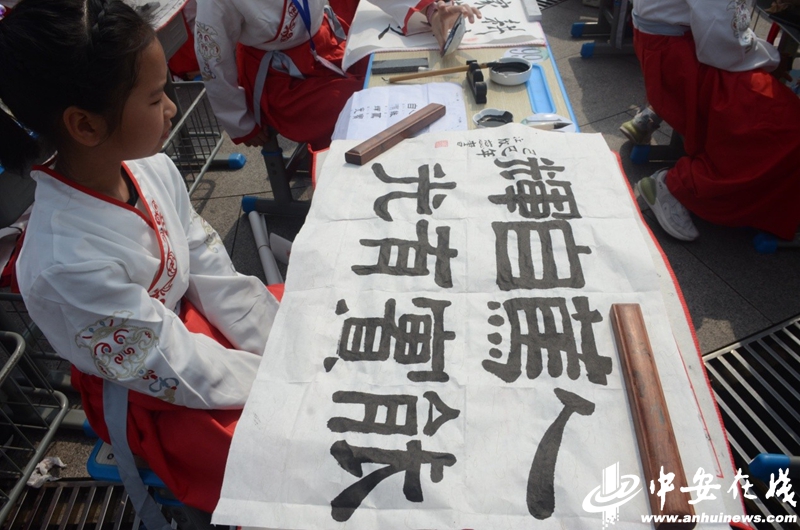 中安在线、中安新闻客户端讯 4月20日,第四届“着汉服写家风”百名学生现场书法比赛活动在东至县新时代文明实践中心广场举行,来自全县三所初中和四所小学共计150名中小学生参加现场比赛活动。本次活动的成功举办,是东至县“传承好家风 弘扬好家训”主题宣传教育活动的丰富呈现,为推进新时代文明实践起到积极作用。