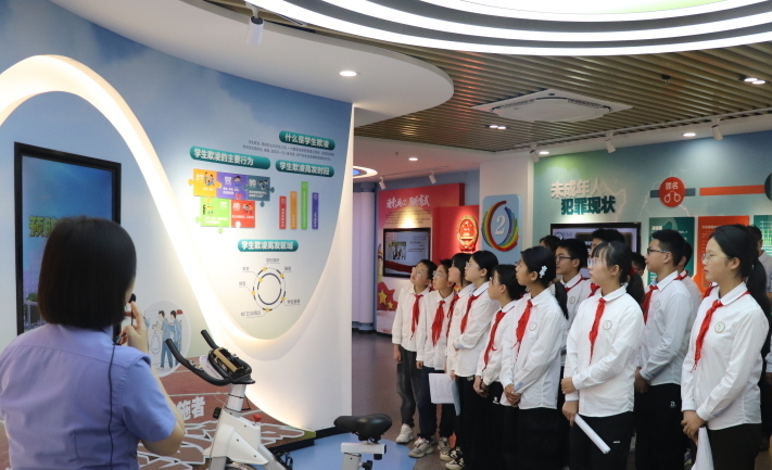 图为检察干警向学生讲解文物保护知识和公益诉讼检察职能。(胡娜 摄)