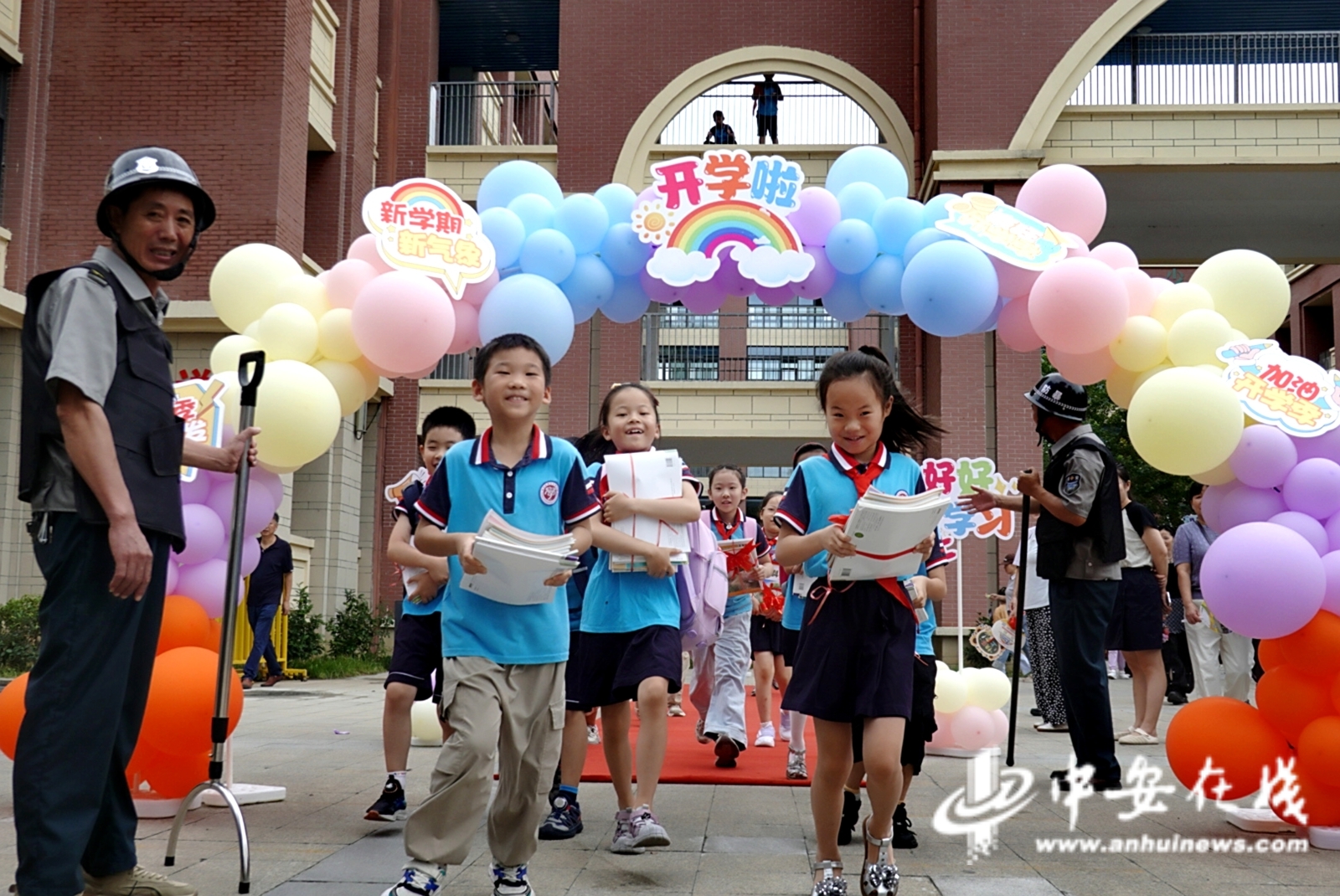 中安在线、中安新闻客户端讯 8月31日,在合肥市肥东县新安江路小学,领到新书的学生们开心地奔跑在校园里。当日,合肥各地中小学迎来秋季开学季,学生们安全有序返校报到,领取新书,喜迎新学期的到来。(许庆勇 记者 刘玉才)