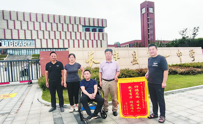 在老师的鼓励下,在亲人的陪伴下,王晨昱没有辜负大家的期望,最终在今年的高考中取得了物理科目组合599分的好成绩,是高三(15)班的第一名。6月27日,王晨昱一家来到长丰一中,为老师们送上了一面锦旗,感谢老师们的教导。